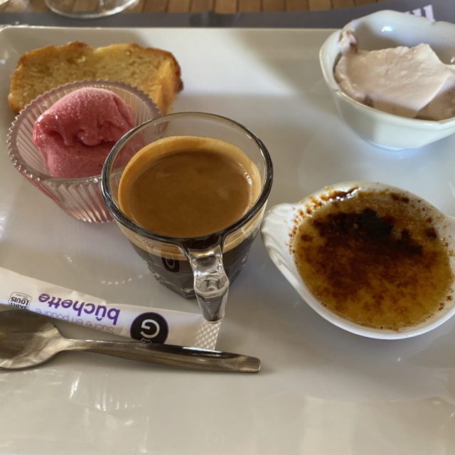 A Classic Café Gourmand to end lunch at a restaurant in Couhe, France