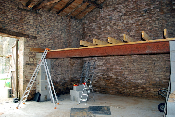 Having spent out on the roof it seemed crazy not to spend a little more in creating a workshop for the classic cars. So, Drew and Brett’s services were retained, an RSJ was purchased from someone who had “broken” a barn and the floor was dug out for the laying of concrete.